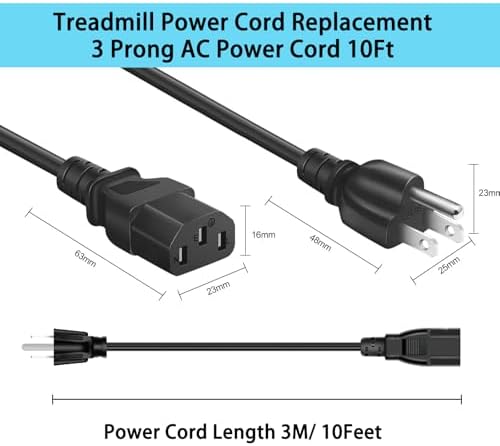 Designed to operate within a voltage range of 110-125V, this power cord features an 18AWG wire gauge and a maximum capacity of 10A. It’s equipped with a NEMA 5-15P plug to C13 connection, making it compatible with a broad variety of fitness equipment, including top brands such as Fitness Treadmills, Ellipticals, Superfit Treadmills, BowFlex models (TC 100, 1000, 3000, 5000, 5300, 5500, 6000), and various Horizon Fitness products. This cord serves as an excellent replacement supply cord, ensuring your machines remain powered and ready for use.