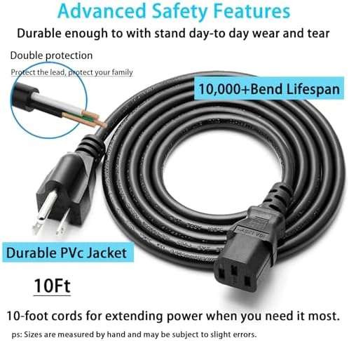Measuring at 10 feet, this power cord provides generous reach, allowing you to charge your devices and equipment without restriction. Its compact and portable design makes it an ideal travel companion, perfect for both home and on-the-go usage.